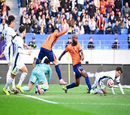 梅州客家(红)2比2战平大连英博