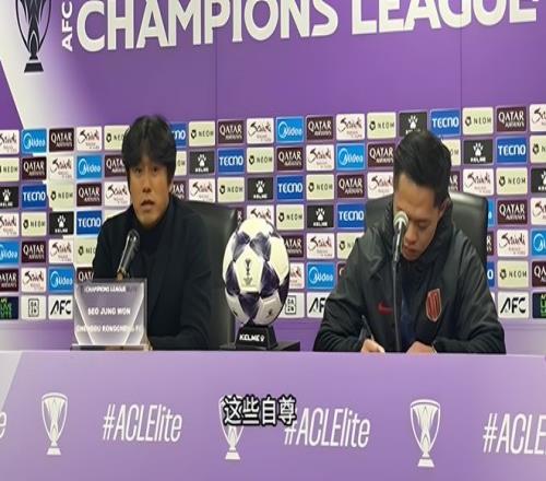 徐正源表示,目前亚冠中超球队的整体排名都比较低,“每当看到这个情况,我也会伤心,有的时候我也会非常的生气。所以说我也是经常给我们所有的球员强调今天这场比赛,来到亚冠赛场,我们还是要尽量去展现我们的足球,展现我们的特点,也要去拯救中国足球的自尊。”