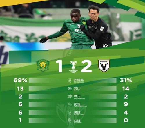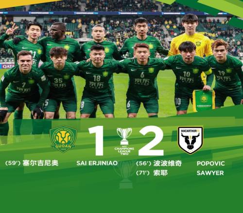 最终,北京国安主场1-2负于麦克阿瑟FC。