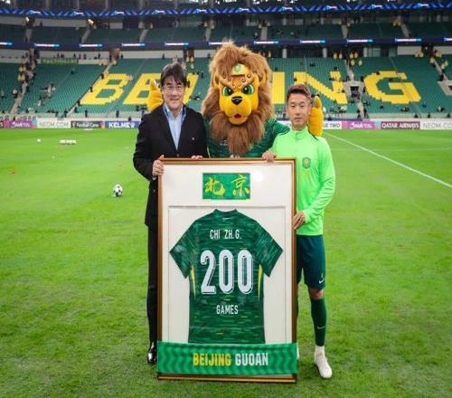 本场比赛之前,总经理李明代表俱乐部,向完成各项赛季200场出场的池忠国颁发纪念球衣。