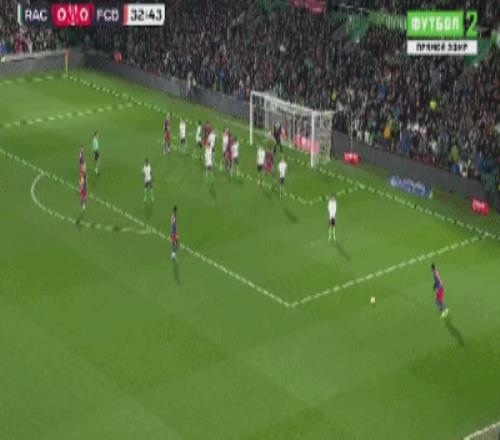 第33分钟,亚马尔右路任意球直接打门,皮球一脚踢高