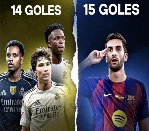 国王杯1/8决赛巴萨客场对阵桑坦德竞技,比赛第66分钟,费兰托雷斯接队友费尔明的直塞,贡献一记单刀破门,这粒进球除了带领巴萨挺进国王杯8强,也是这位西班牙前锋本赛季所打入第15粒进球。费兰托雷斯本赛季各项赛事15球,这个数字竟超过了皇马三大攻击手维尼修斯、罗德里戈和贡萨洛加西亚的进球总和。