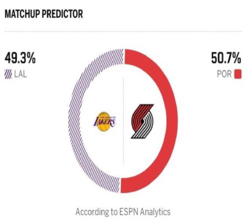 北京时间1月18日,NBA常规赛继续进行,开拓者坐镇主场迎战湖人。两队近期的状态波动明显,赛前开拓者以20胜22负的战绩暂列西部第9,核心阿夫迪亚的缺阵后,球队的状态出现明显滑坡,在上一场击败老鹰前,遭遇两连败。而在此前对阵老鹰的比赛中,开拓者在夏普的带领下多点开花,多名球员得分上双,最终斩获一场酣畅胜利。反观湖人目前以24胜15负稳居西部第六6,但是近期球队的状态令人堪忧,近5场比赛输掉4场,上一场主场对阵黄蜂的比赛中,湖人核心阵容表现亮眼,詹姆斯轰下29分,东契奇贡献39分,但替补席彻底陷入沉寂,全队替补合计仅得到9分,攻防两端的厚度严重不足。首先与替补席实力的严重失衡,让湖人难以抵挡黄蜂的持续冲击,最终惨败收场。本场比赛,里夫斯继续缺阵,东契奇、艾顿也因伤缺阵,两大持球大核同时缺席,无疑让湖人的实力大打折扣,ESPN给出预测,湖人此役取胜概率为49.3%,开拓者取胜的概率为50.7%。