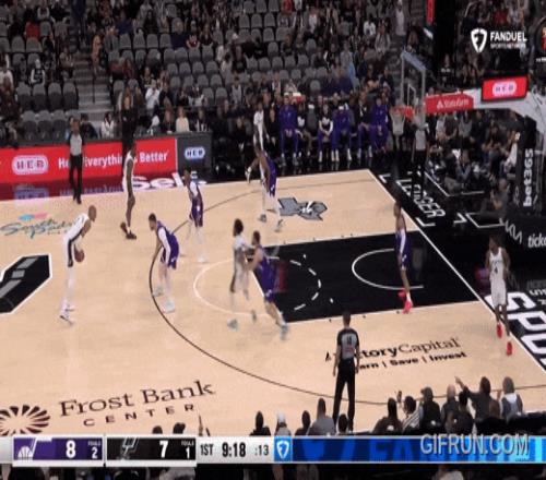 马刺最好的领防人卡斯尔施压,被华兹一步过。