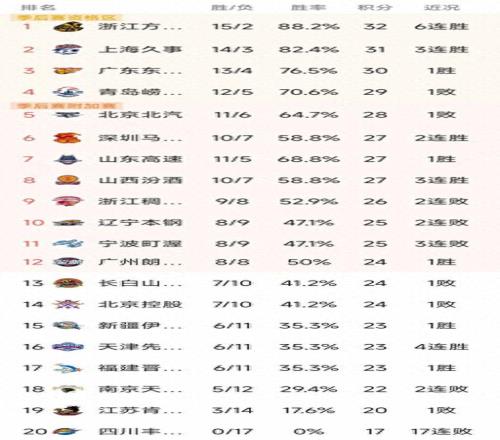 CBA最新积分榜