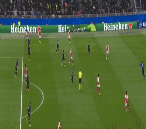第10分钟,阿森纳在国米的30米区域打出眼花缭乱的配合,廷贝尔将球扫到中路,热苏斯插上,打破僵局。