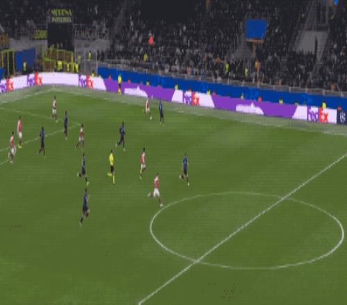 开场后,阿森纳反客为主,完全压制主队。前10分钟,枪手已经完成5次射门,而国米还没进入比赛节奏。第10分钟,廷贝尔扫向中路,热苏斯前插破门,阿森纳1-0率先打破僵局。