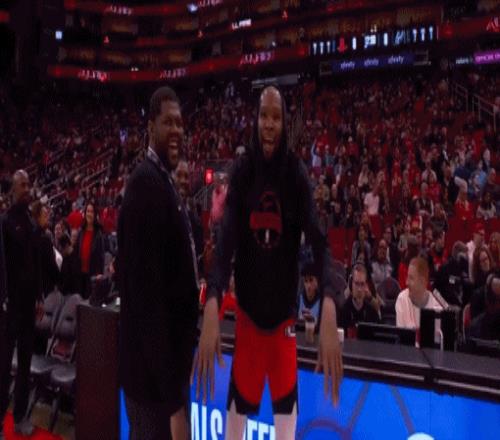 火箭那边热身完在场下干等,身子都变冷了,球员开始精神唤散