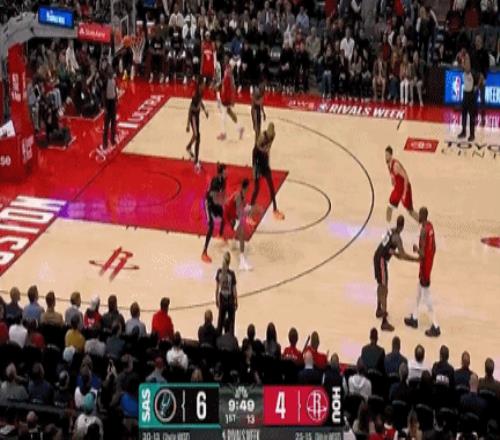 半场,马刺70-60火箭。
