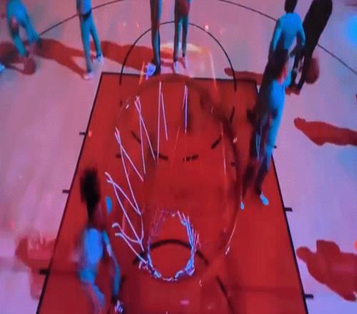 在赛前的热身中,文班亚马一个轻松写意的胯下橱樽,竟然一下子就把篮筐给锄坏了……