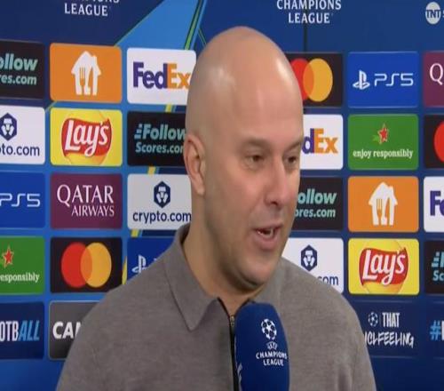 欧冠联赛阶段第7轮,利物浦客场3-0击败马赛,赛后,红军主帅斯洛特接受了TNT体育的采访。